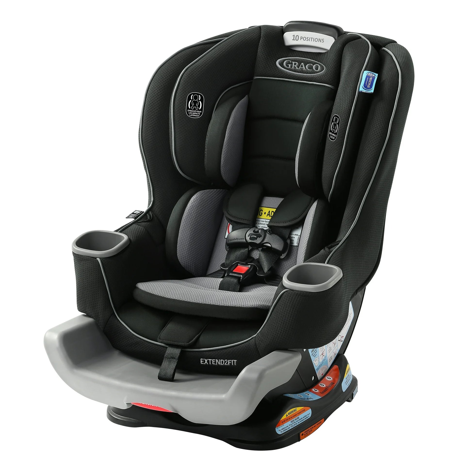 - Extend2Fit Technology — 4-position adjustable extension panel adds up to 5" (12.7 cm) of extra legroom for comfy, prolonged rear-facing rides