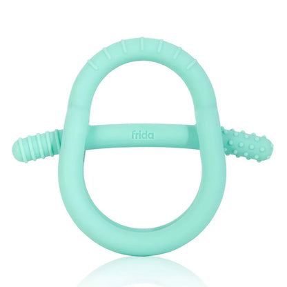 Help your baby drop the tantrums, not their teether. The Frida Baby 3-in-1 Get-A-Grip Teether has a bar handle that engages your baby's natural grasp reflex and a wrist-hugging design for a more secure hold that prevents accidental tossing and dropping. Made from 100% food-grade silicone, it's a teether toy with multiple shapes that reach front, back, and all new teeth types, and different textures that provide soothing relief for sore gums. From first teeth to mini molars, it's so good they won't want to put it down.
